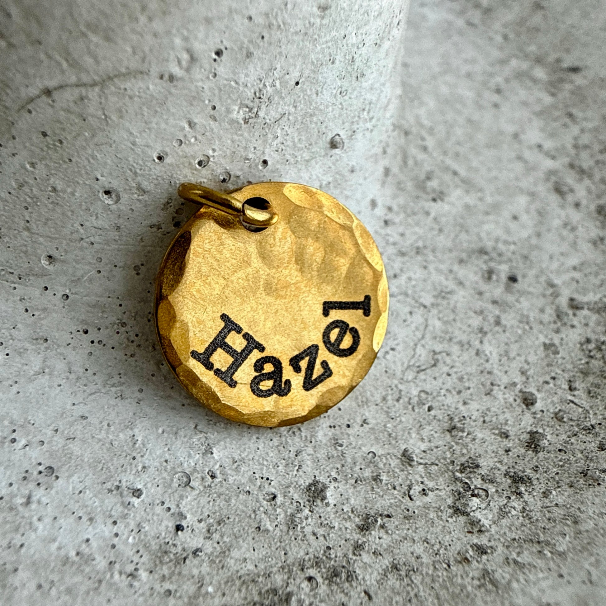 Personalized with a meaningful name, this hand-hammered charm transforms a simple detail into a lasting keepsake. Crafted from durable stainless steel with a luminous gold finish, it is water resistant and designed for everyday wear—an elegant, heartfelt piece created to keep the names that matter most always close.
